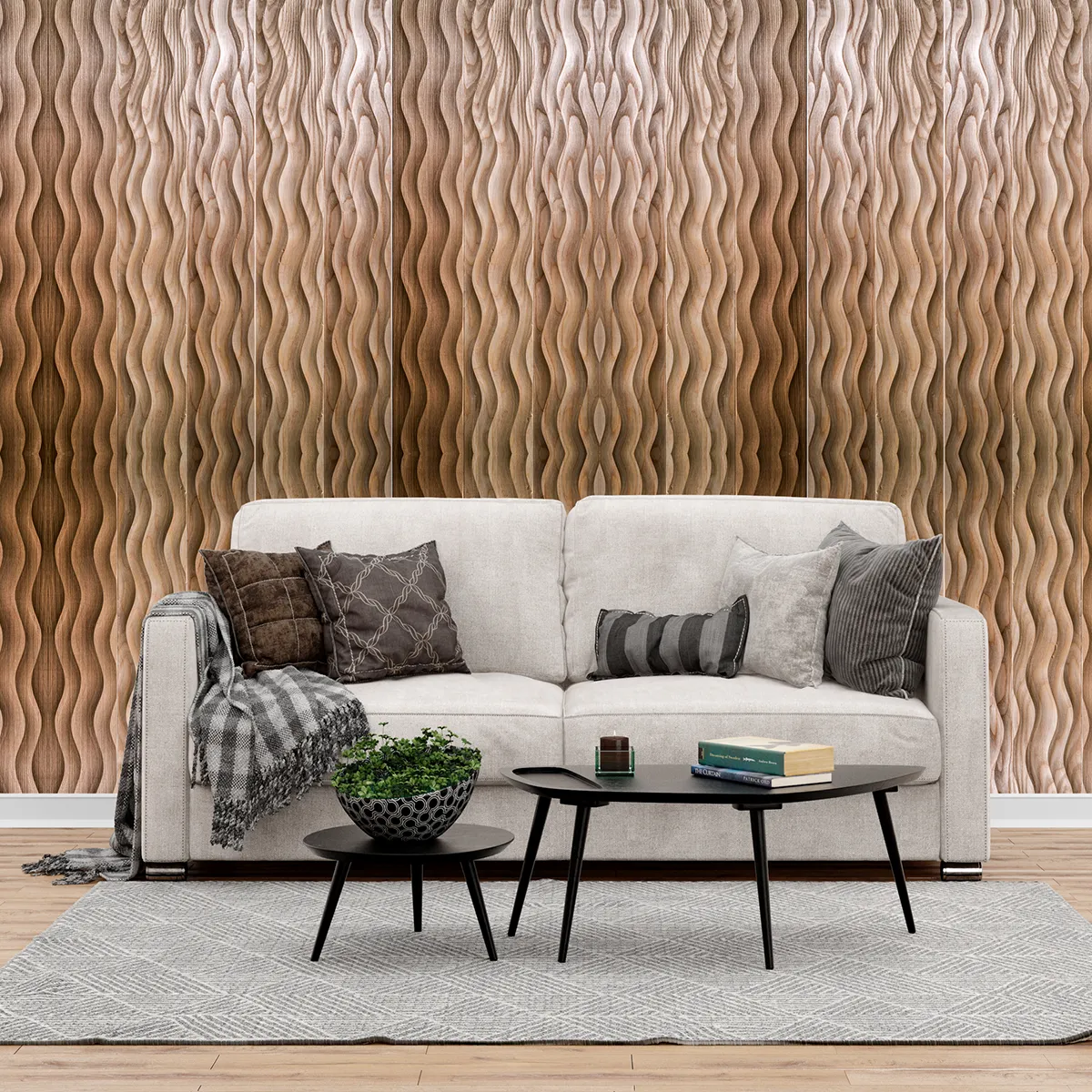 Panoul din lemn masiv de frasin din colecția Wave este conceput pentru a introduce naturalețea și eleganța lemnului într-o formă modernă, evidențiind în același timp fluiditatea liniilor inspirate de valuri. Fiecare panou este atent prelucrat pentru a păstra autenticitatea fibrei și pentru a obține un efect vizual de mișcare continuă.