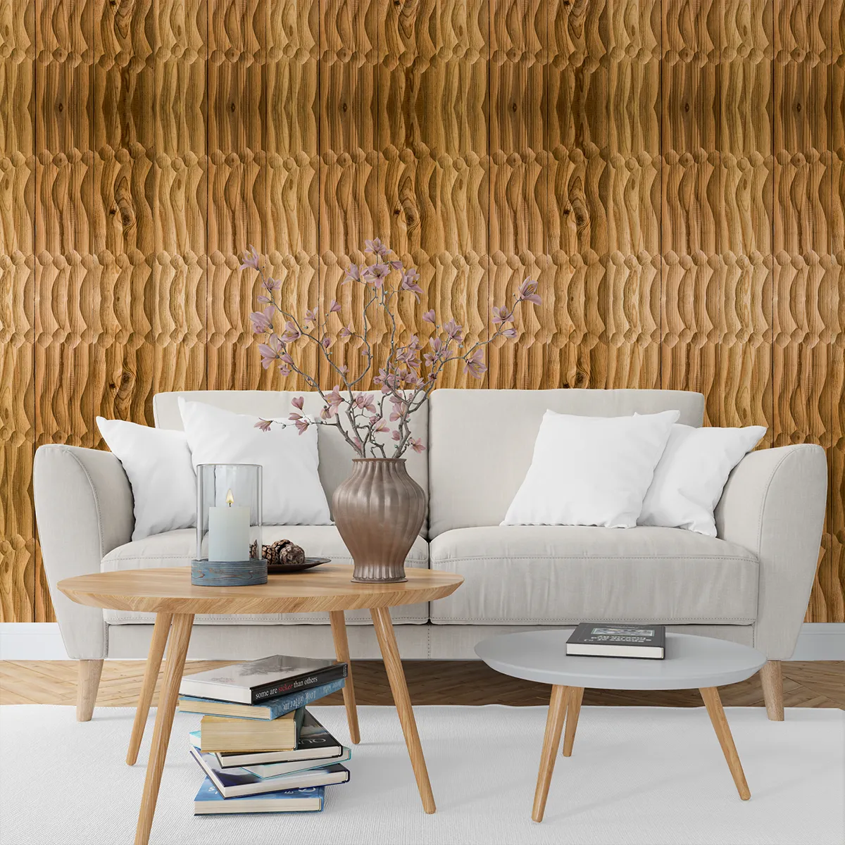 Acest panou decorativ fabricat din lemn de pin tratat termic, specific colecției Sky, impresionează prin tonurile calde și suprafața catifelată ce rezultă în urma procesului de termo-tratare. Textura evidențiază finețea și claritatea fibrei de pin, iar modelul urmărește un concept inspirat de mișcarea aerului, aducând o notă de prospețime și modernitate în spațiul amenajat.